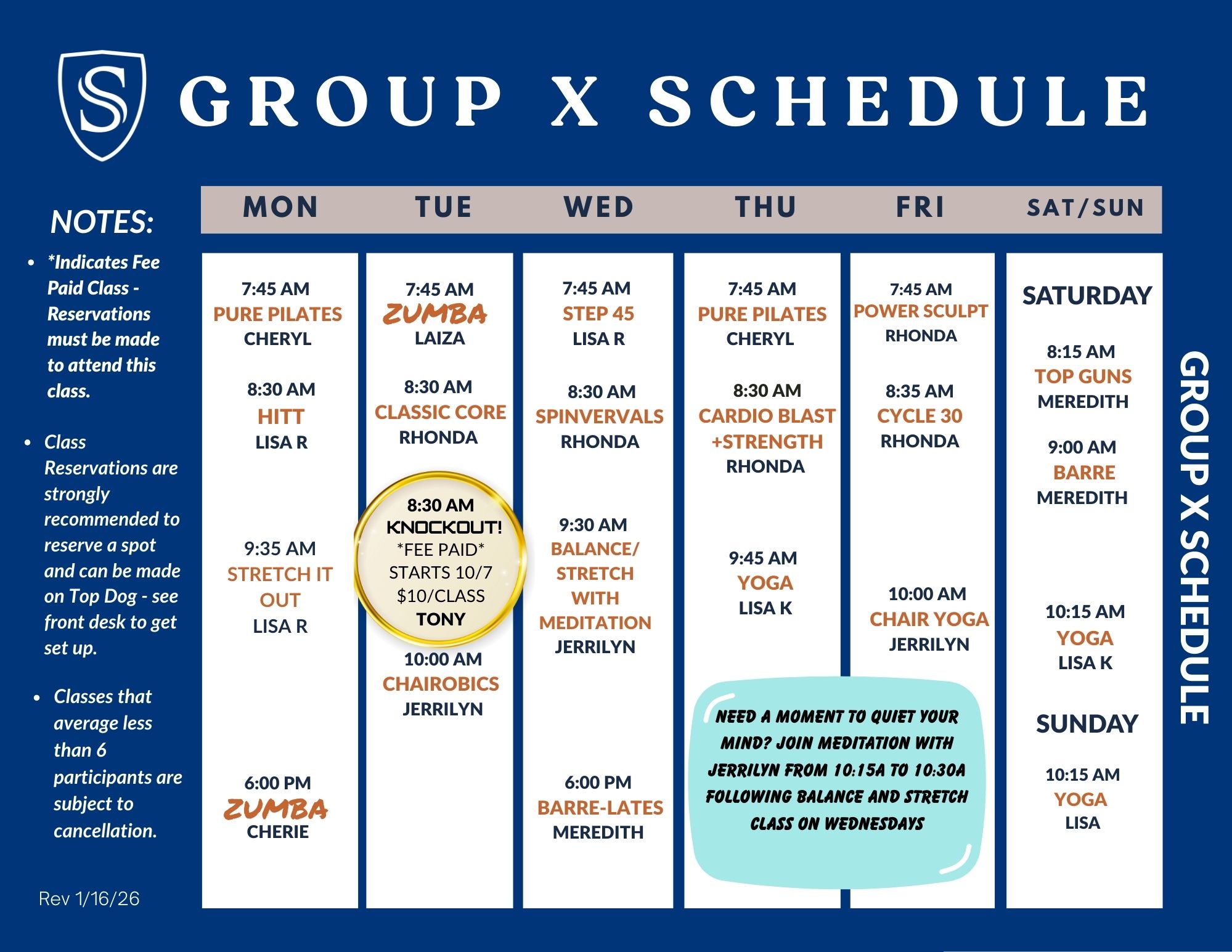 SWCC Group X offers over 20 classes per week! With a wide variety of formats, you’re sure to find one (or several) that meet your fitness needs. Classes include Yoga, Pilates, Cycle, Barre, Zumba, Strength, Aqua and many others, including classes for our Active Older Adult Population. With an experienced staff of instructors, you’ll be motivated to stretch, jump, cycle, lift or splash your way to a fitter body. Feel free to drop in to any class and if it’s your first time, let the instructor know. Our classes are designed for multi-level participation, so modifications can be made from beginner to advanced participants.